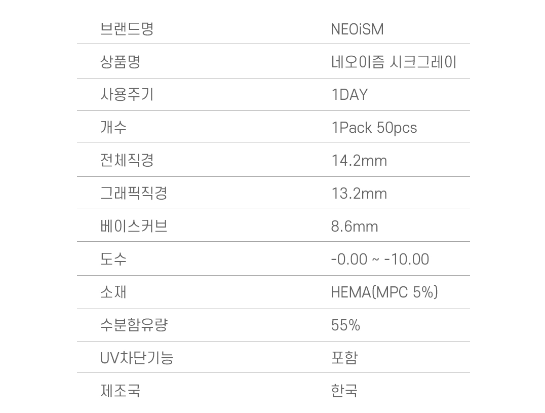 네오이즘 시크그레이 원데이 50P + 50P
