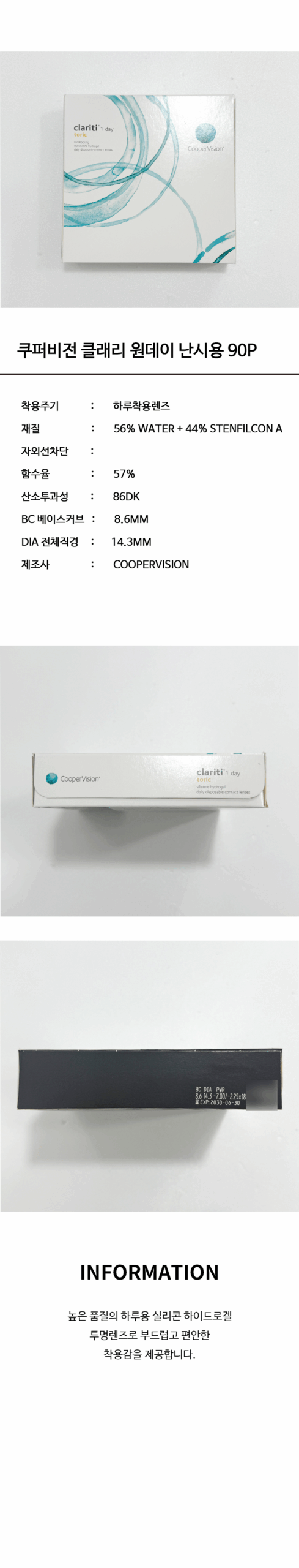쿠퍼비전 클래리티 원데이 난시용 90P