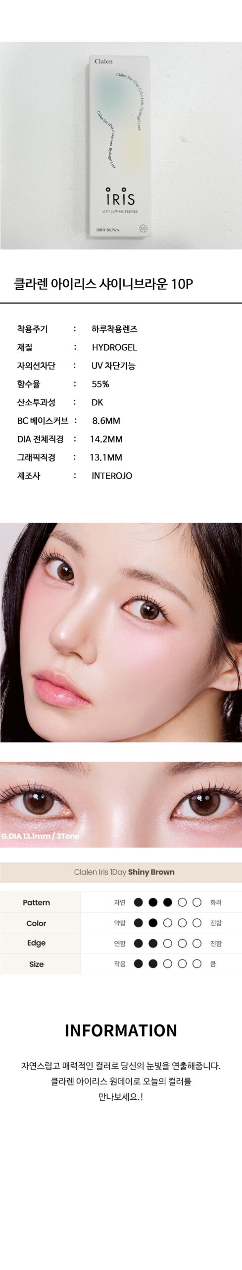 클라렌 아이리스 뮤즈 원데이 샤이니브라운 10P